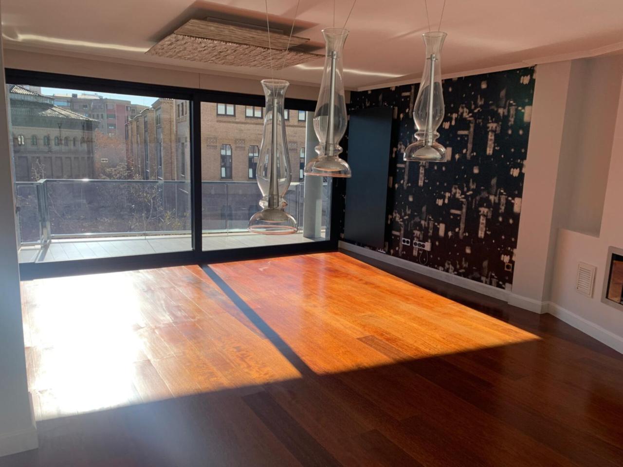 Venta de vivienda semiático situada al comienzo de Doctor Cerrada junto al paseo Pamplona con excelentes vistas al Paraninfo y plaza de Paraíso. El piso es exterior con orientación este/oeste y tiene unos 120 metros cuadrados útiles con 20metros cuadrados de terraza exterior a la calle y unos 10 metros de terraza interior a patio de manzana. El piso se vende con una plaza de garaje en el sótano -1 de 20 metros cuadrados y un cuarto trastero de 17 metros cuadrados. Se encuentra en una cuarta planta en una casa de 2008 que dispone de salón de 33 m2, 3 dormitorios, el principal con vestidor y baño incorporado con bañera de hidromasaje y ducha, el otro baño también dispone de bañera de hidromasaje. La cocina, en un estado excelente, tiene una superficie de 14m2 y está totalmente equipada en Porcelanosa. La calefacción es individual por gas, dispone de aire acondicionado con bomba de frío/calor por conductos y susceptible de división en dos zonas de la casa. El piso dispone de cuatro armarios empotrados y vestidos. Todos los materiales son de primeras calidades. Buena oportunidad.